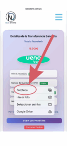 Aqui una vez que tengamos guardado la captura de la transferencia, clic en subir comprobante