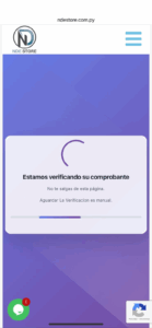 Una vez seleccionado el comprobante automáticamente te va a redirigir a esta pagina, Solo aguardaremos la verificación de comprobante cargado, demora entre 5min a 15min.